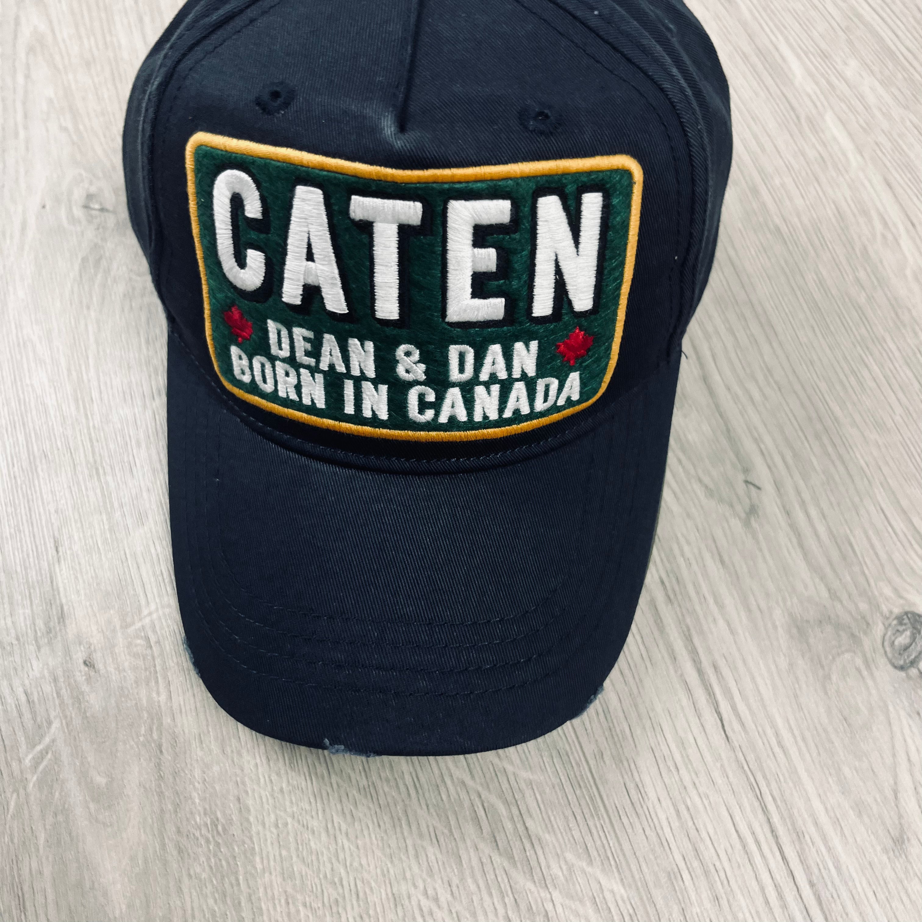 Navy blue DSQUARED baseball cap with CATEN panel patch embroidery